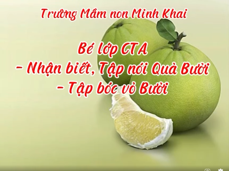 át, nhận biết, tập nói “quả bưởi”với các đặc điểm từ màu sắc đến hình dáng.