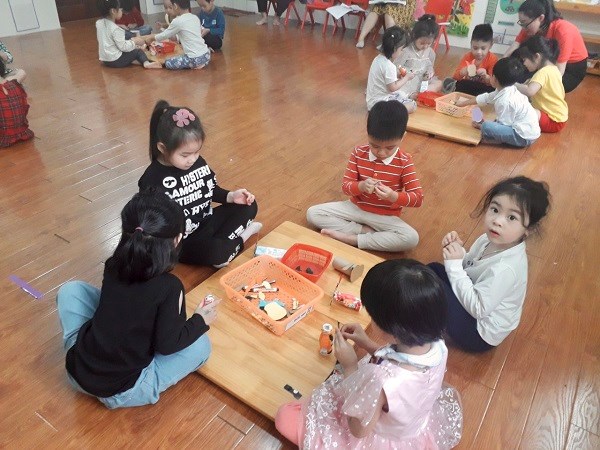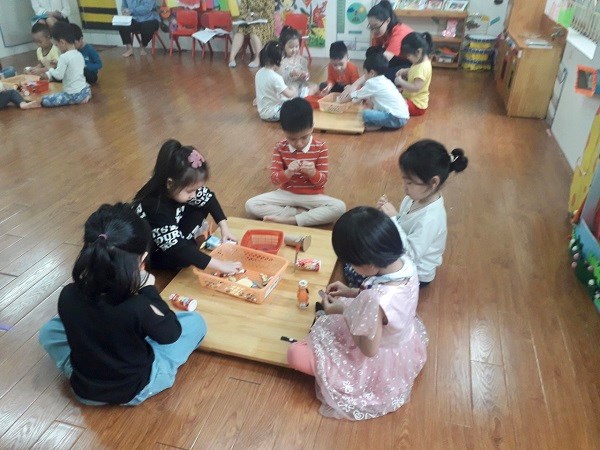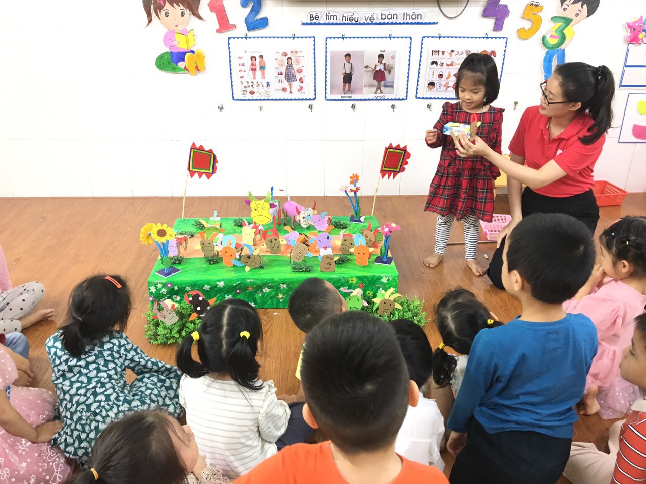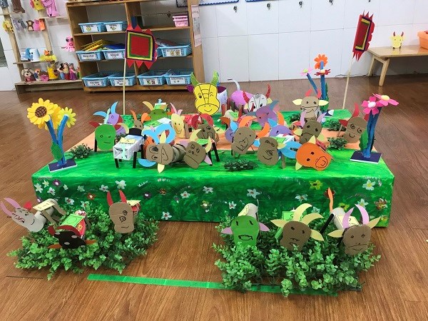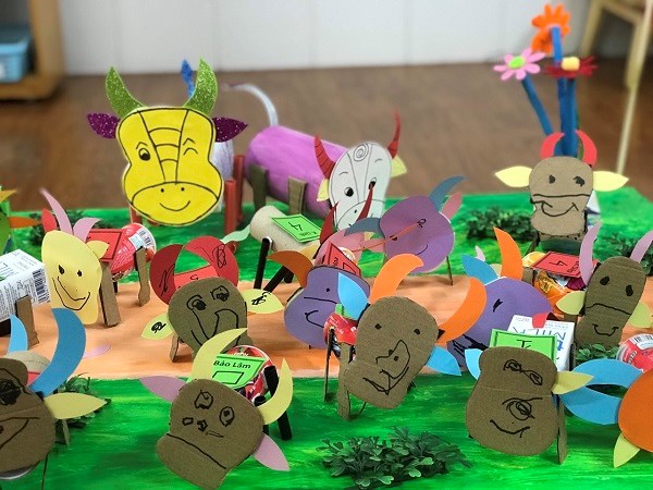 Hãy đến với hoạt động tạo hình: “Làm con trâu “ của các bé lớp 4 tuổi B2. Bằng các nguyên vật liệu tự nhiên như lõi giấy, vỏ hộp sữa, ống mút… các bé đã tự tay sáng tạo ra các khuôn mặt cũng như các bộ phận của những chú trâu. Thật ngộ nghĩnh, đáng yêu phải không nào?