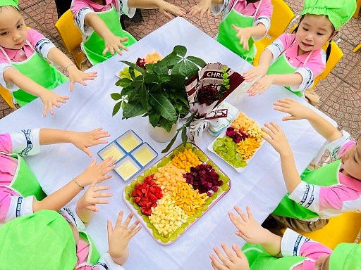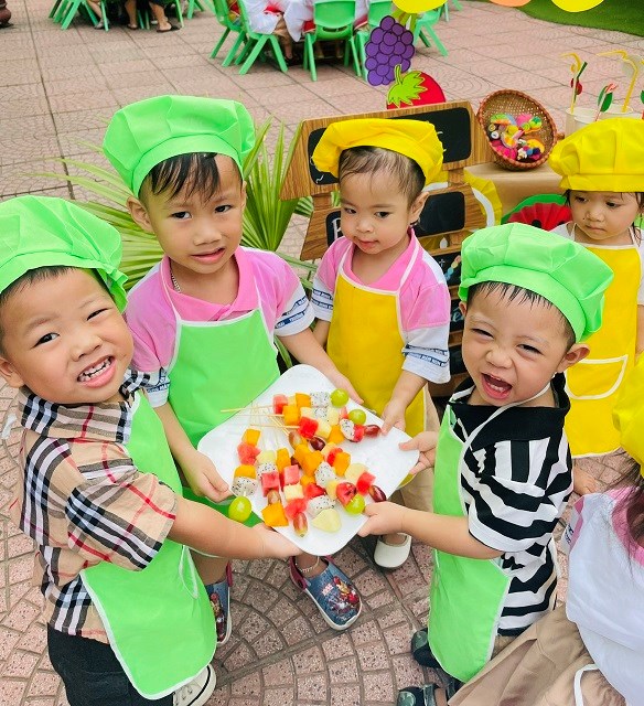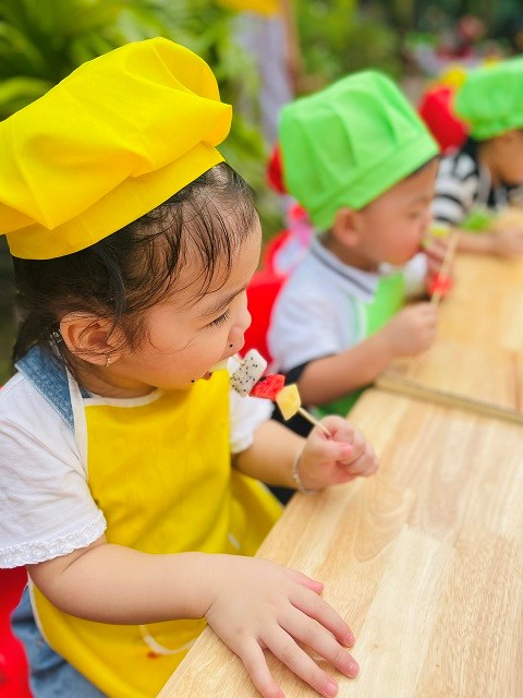 Hoạt động "Bé tập làm nội trợ" giúp các bé có được cảm giác tự hào khi tự tay làm được một món ăn nào đó, được làm cùng bạn bè, được vui chơi, được tha hồ sáng tạo khám phá…