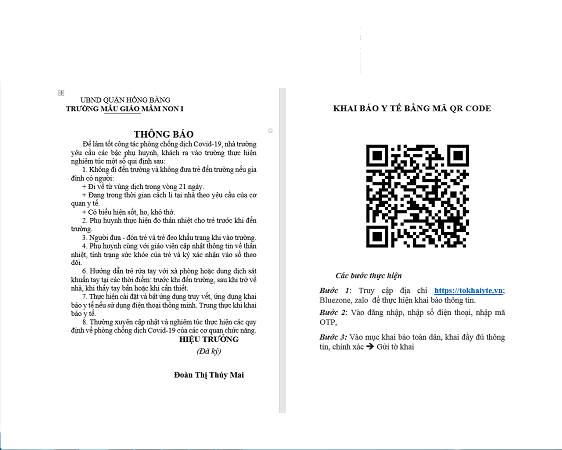 Để làm tốt công tác phòng chống dịch Covid-19, nhà trường yêu cầu các bậc phụ huynh, khách ra vào trường thực hiện nghiêm túc một số qui định sau: