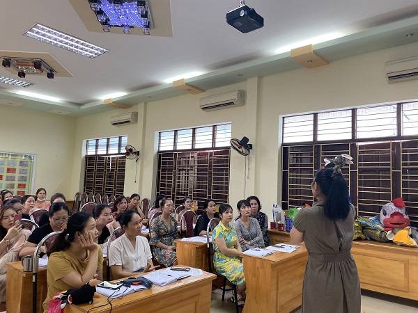 Sáng ngày 24/8 tập thể cán bộ giáo viên trường Mẫu giáo mầm non I tích cực tham gia lớp tập huấn bồi dưỡng chuyên môn về kỹ năng kể chuyện và sử dụng rối cho giáo viên. Với nhiều nội dung câu truyện phong phú, hấp dẫn, giáo viên tham gia học tập rất nhiệt tình, sôi nổi.